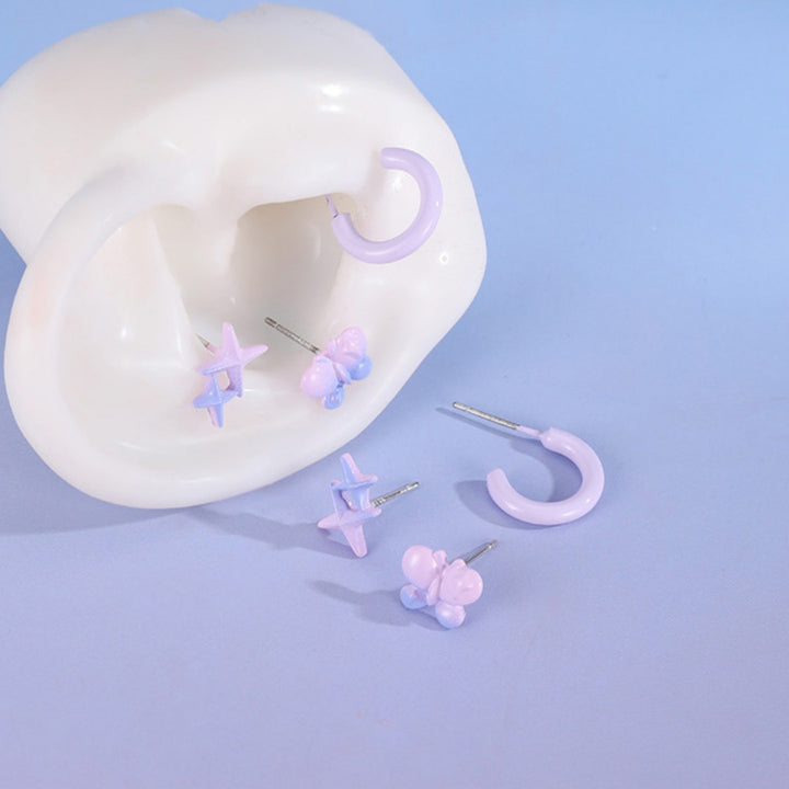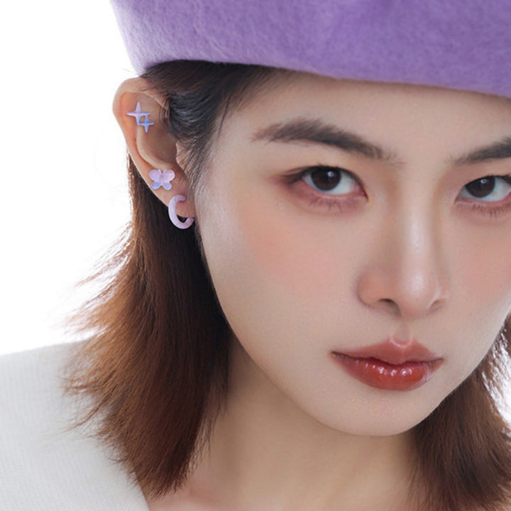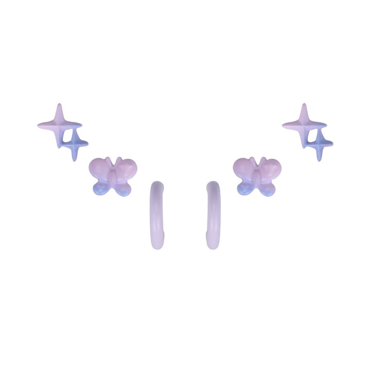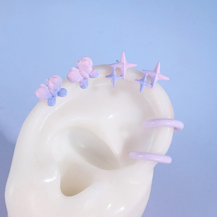 FJW fresh gradient blue purple four pointed star helix earring set (3 pairs included)