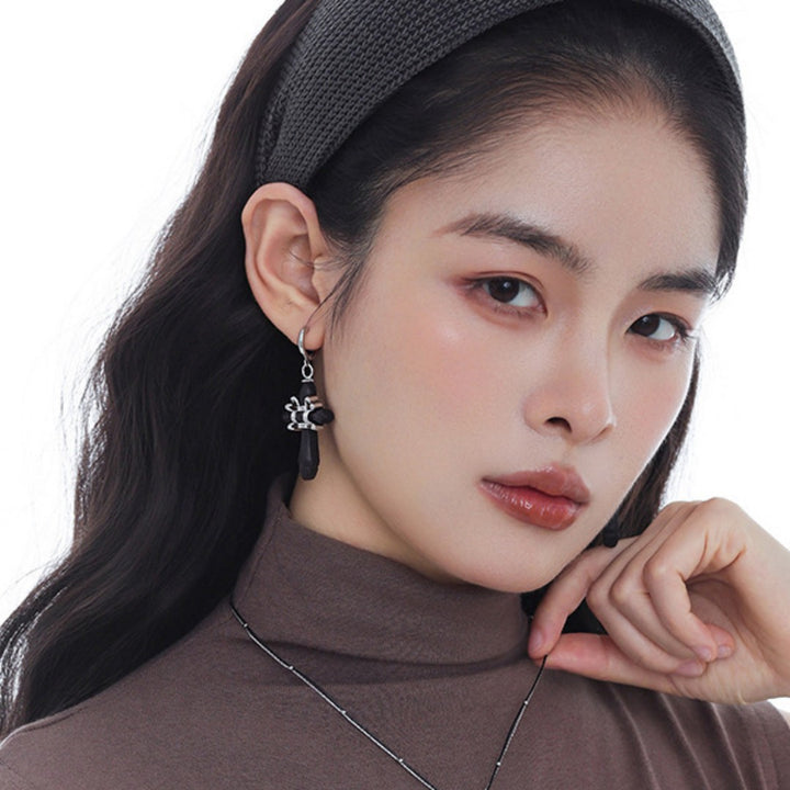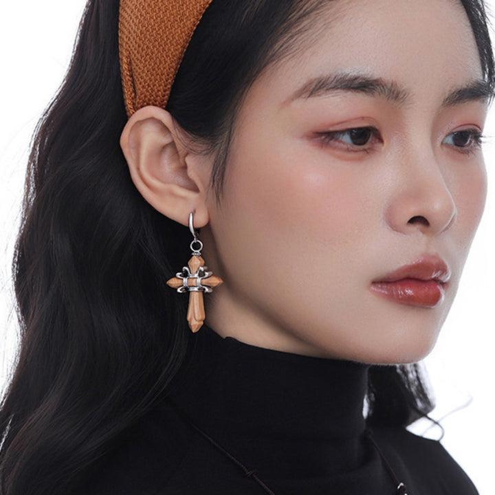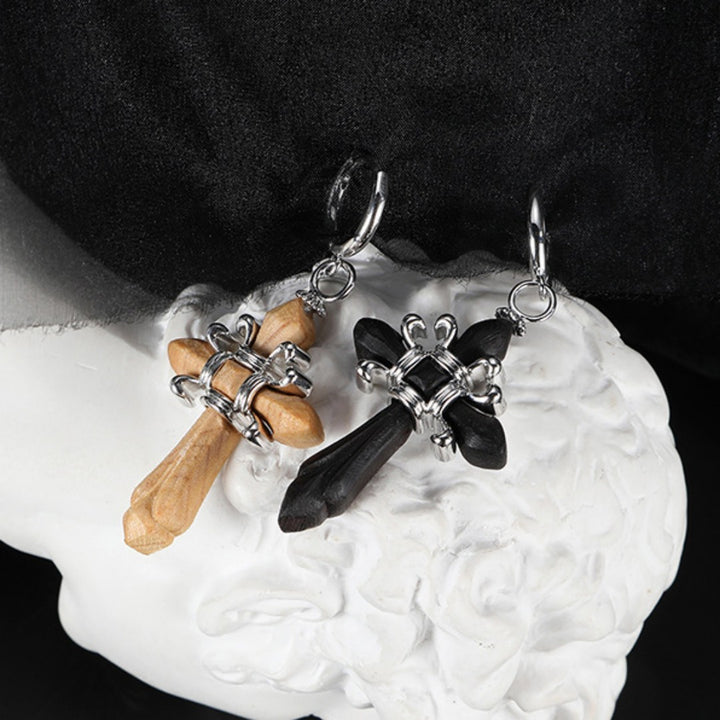 -Material:S925 stud+metal+copper+ebony(black) / Thuja sutchuenensis(brown)