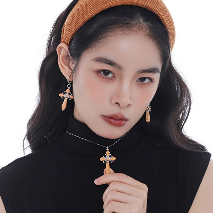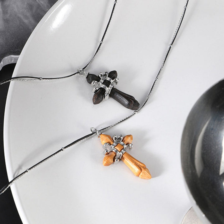 FJW retro wooden cross necklace fashion clothing accessories