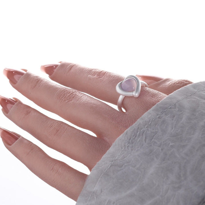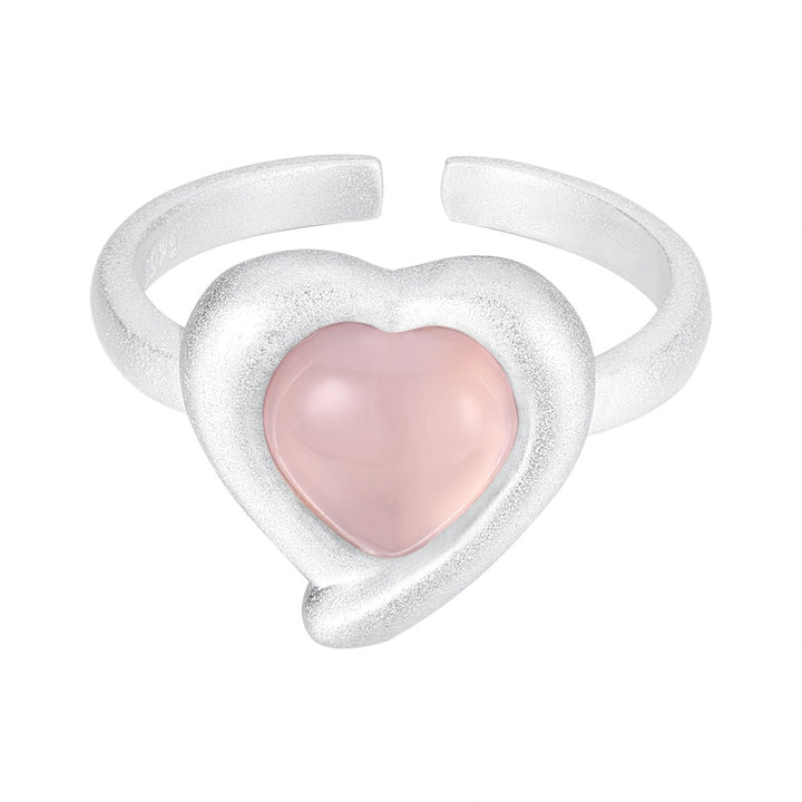 FJW S925 adorable pink heart agate matte-finish open-end ring