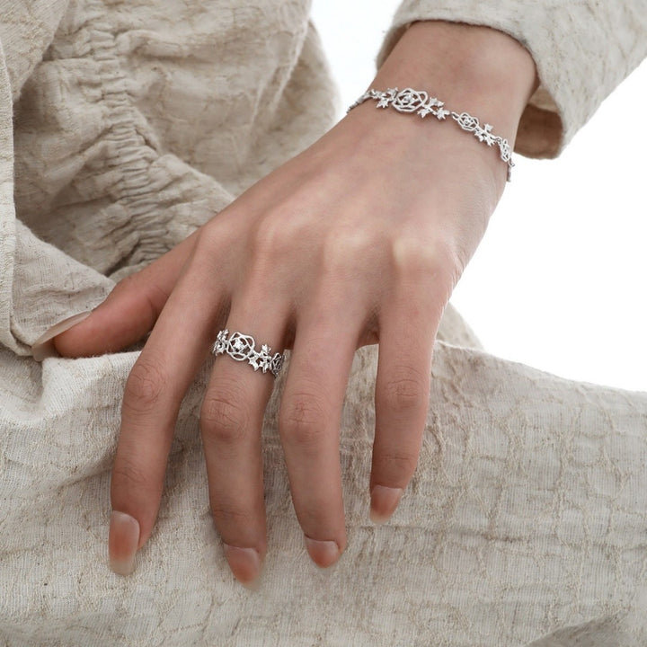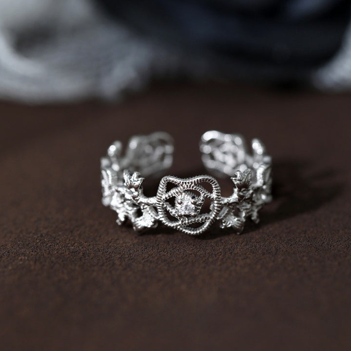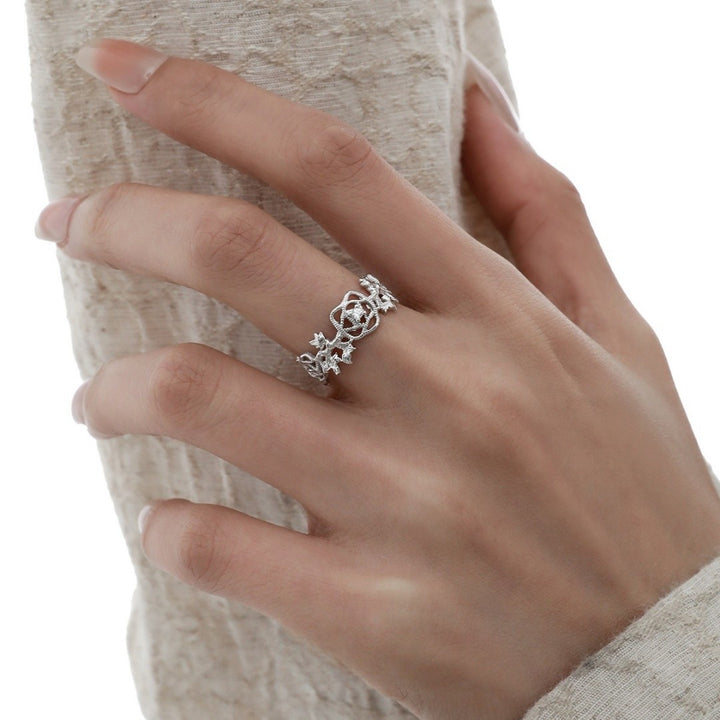 FJW S925 elegant rose lace adjustable ring