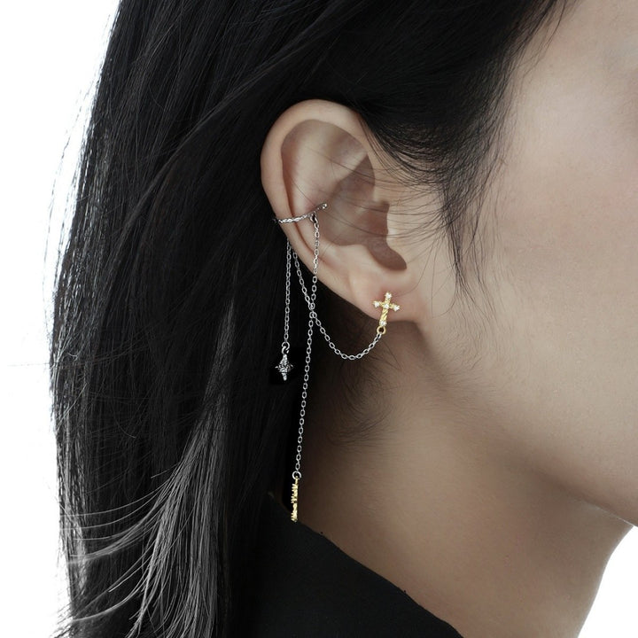 FJW S925 minimalist niche exquisite cross ear cuff