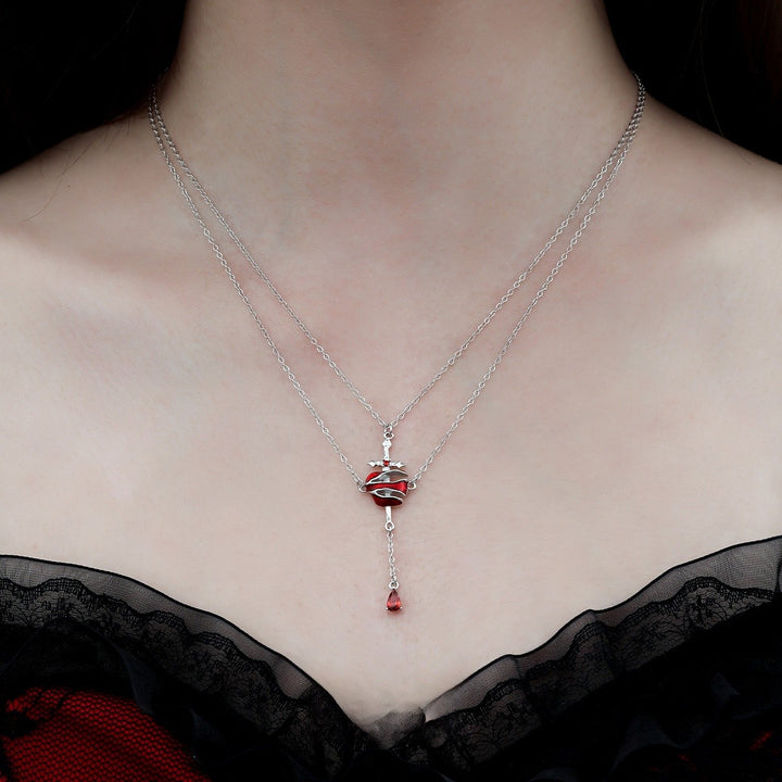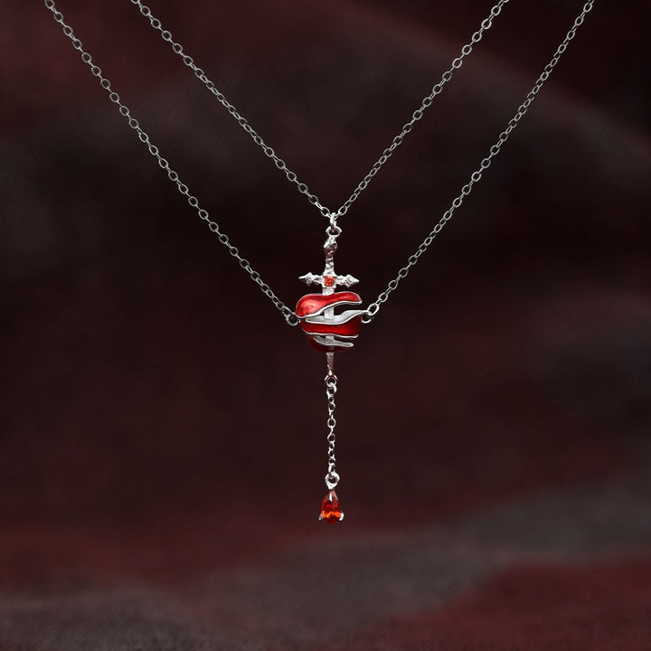 FJW trend S925 knight sword red apple layered necklace